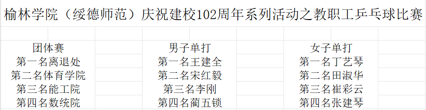伟德BV1946(绥德师范)庆祝建校102周年系列活动之教职工乒乓球比赛